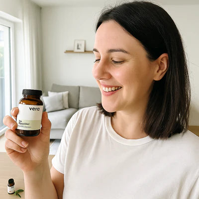 Beate T.verifizierter KundeIch habe VERA eigentlich eher aus Verzweiflung ausprobiert, da ich seit meiner Schwangerschaft vor drei Jahren mit ständiger Erschöpfung und innerer Unruhe zu kämpfen hatte. Meine Schilddrüse war laut Arzt „grenzwertig“, aber nicht behandlungsbedürftig. Ich fühlte mich trotzdem ständig ausgelaugt, gereizt und war kaum belastbar. Seit ich VERA nehme, habe ich endlich das Gefühl, wieder Kraft zu haben – sowohl körperlich als auch mental. Ich kann mich wieder besser konzentrieren, bin gelassener im Alltag und schlafe deutlich besser. Die Veränderung kam schleichend, aber ist heute nicht mehr zu übersehen. Für mich ist VERA ein echter Lebensretter.
