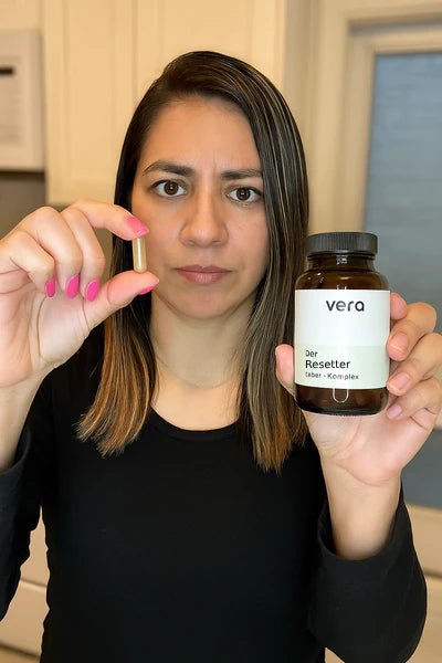 Jasmin S.verifizierter KundeIch habe VERA gekauft, weil ich mich nach meiner Schilddrüsenoperation einfach nicht mehr wohlgefühlt habe. Trotz Medikamenten war ich ständig müde, antriebslos und fror sogar im Sommer. VERA war meine letzte Hoffnung – und wurde zu meiner Rettung. Nach etwa sechs Wochen spürte ich eine deutliche Besserung: Mehr Energie, bessere Stimmung und endlich wieder normale Körpertemperatur. Sogar mein Zyklus, der völlig durcheinander war, hat sich reguliert. Ich bin überrascht, wie umfassend das Produkt wirkt und wie gut es verträglich ist. Für mich ist VERA kein „Zusatz“ mehr, sondern fester Bestandteil meines Alltags.